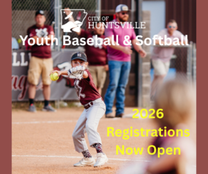 Huntsville’s summer ball season is right around the corner, and registration for Youth Baseball and Softball at Mitchusson Park is officially open. Families are encouraged to register early—the deadline to submit forms is February 27, 2026.